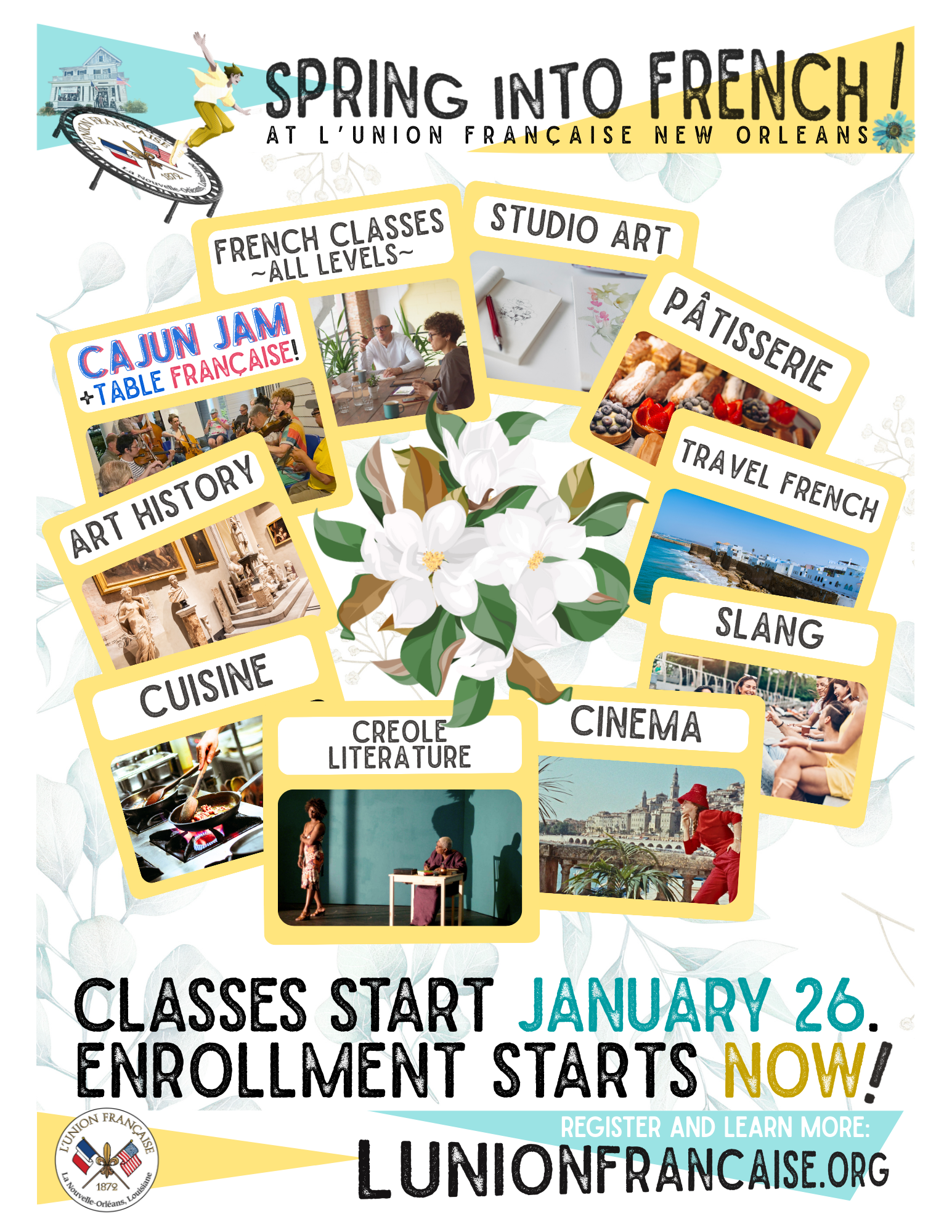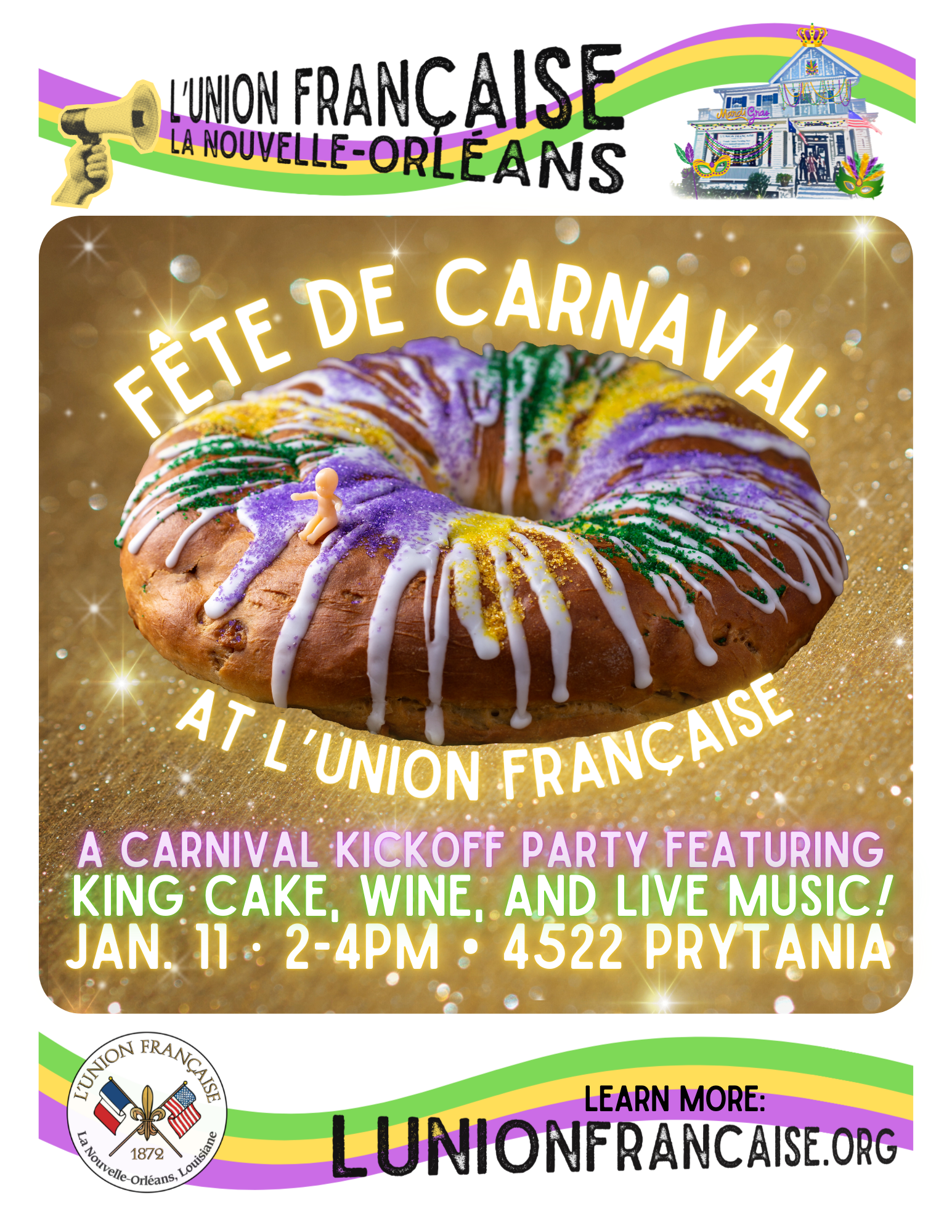 L’Union Française is the oldest of the Franco-Louisiana organizations. Through 150 years of service, this organization is dedicated to its mission of promoting and preserving the French language and French and Francophone culture in the city of New Orleans and Louisiana.