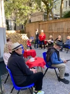Our members visited the antique rose garden in Armstrong Park with a tour led by Leo Watermeier. Then we stopped by the site of the original L’Union Française building on Rampart Street before enjoying wine and snacks in Leo’s beautiful French Quarter courtyard.